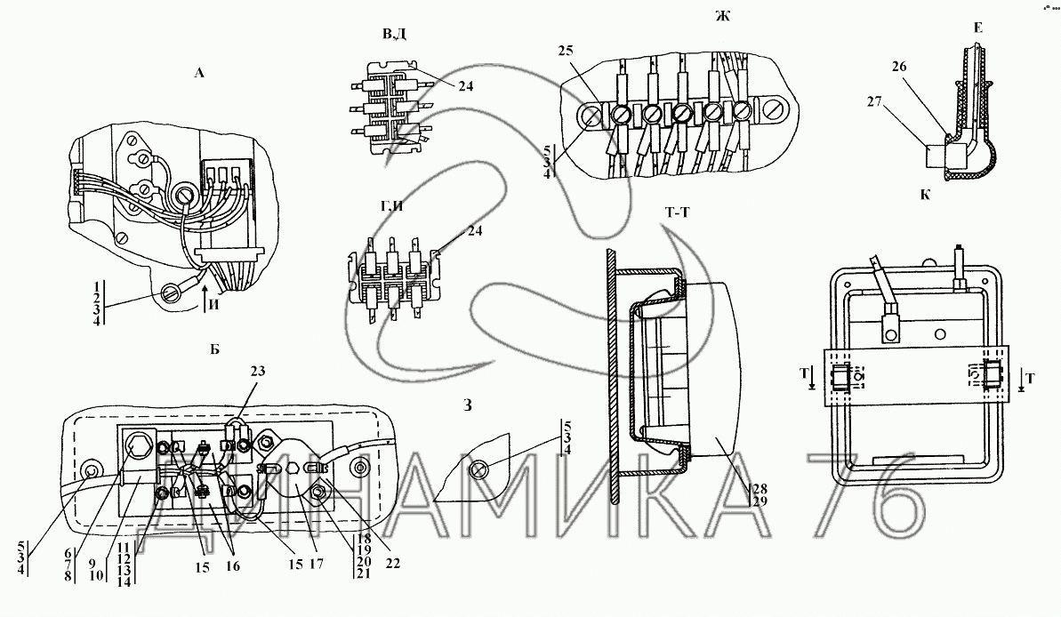 Перечень комплектующих от Электрооборудование крыши кабины на ТГ-221КМ