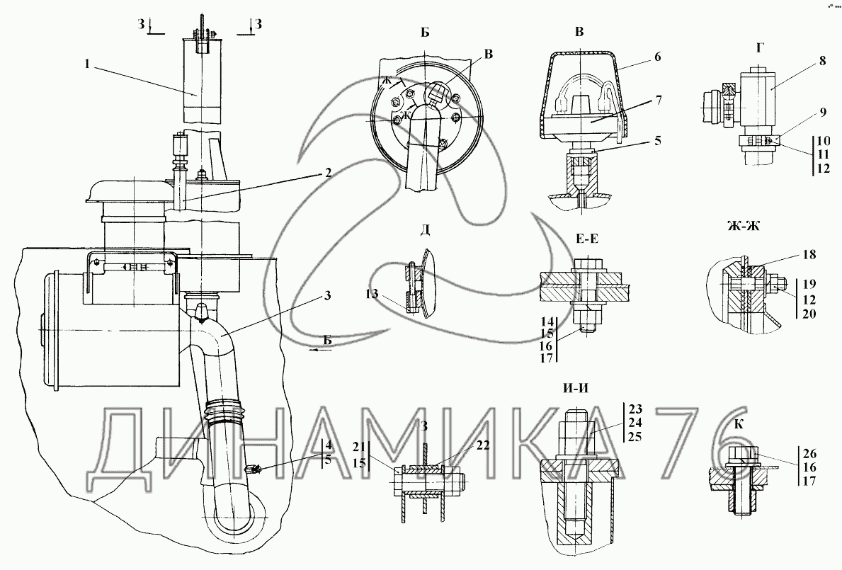 Схемы запчастей предназначены для справочных целей! Мы продаем не все запчасти от Установка систем воздухоочистки и выпуска на ТГ-221КМ, представленные в этом списке.