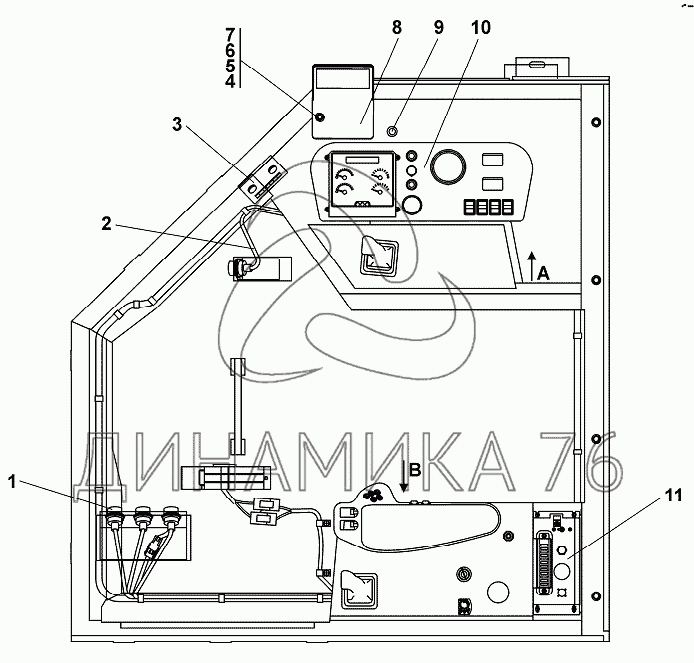 Перечень комплектующих от Электрооборудование пола кабины на ТГ-302Я