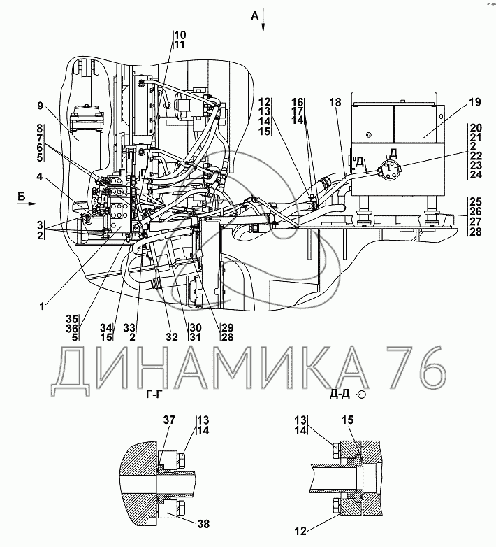 Перечень комплектующих от Установка гидросистемы на ТГ-302Я