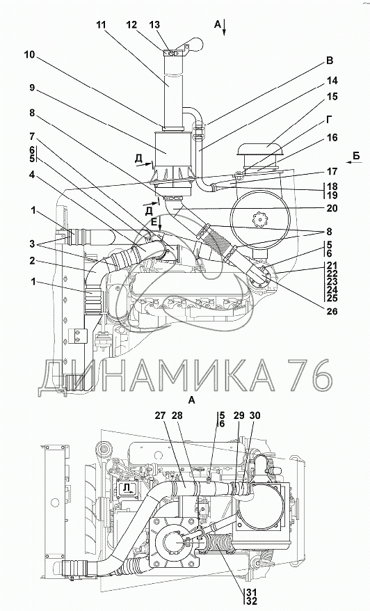 Перечень комплектующих от Установка систем воздухоочистки и выпуска на ТГ-302Я