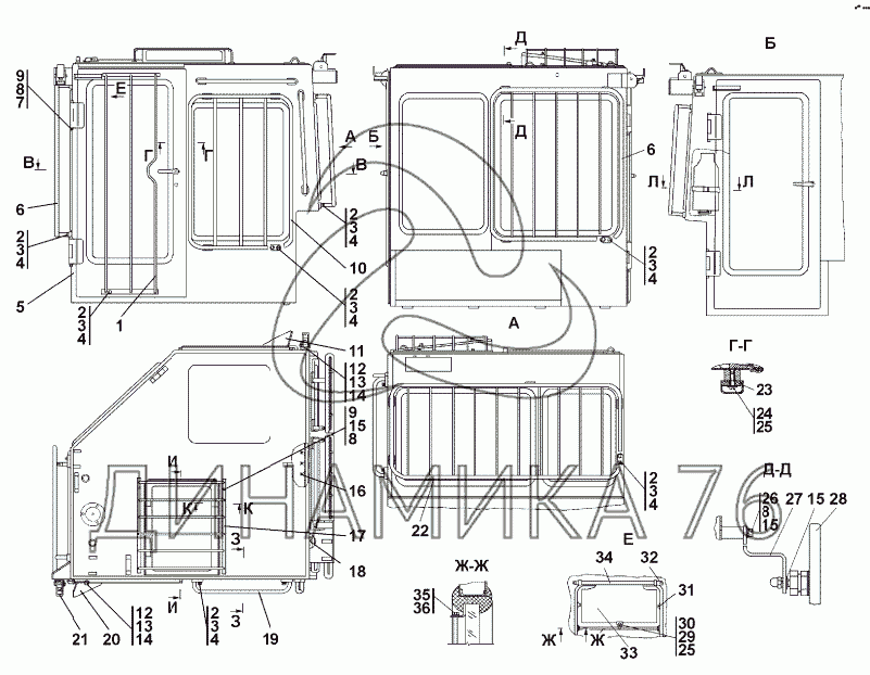 Перечень комплектующих от ТТ2501-59-1СП Кабина на ТГ-503Я
