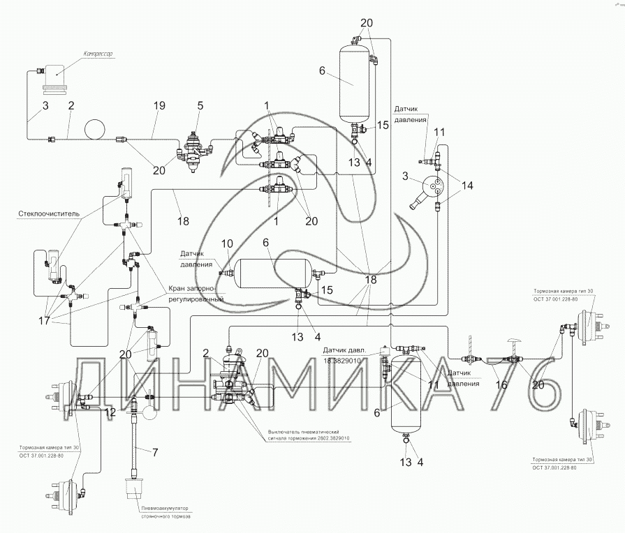 Перечень комплектующих от Тормозная система на К-702МБА-01-БКУ