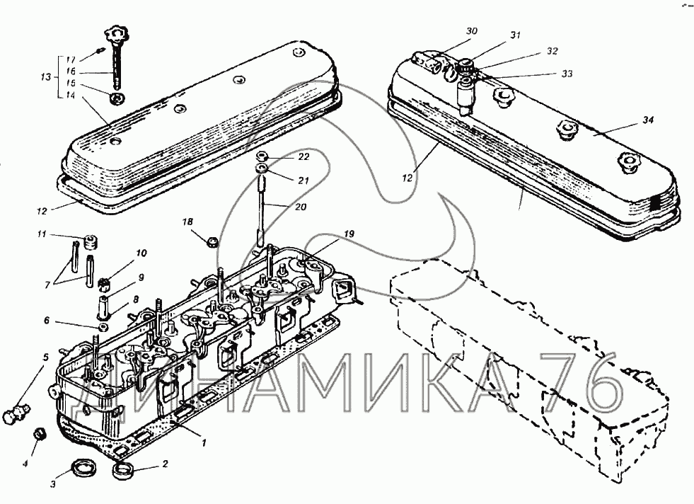 Перечень комплектующих от Головки цилиндров двигателя-238НД на К-702МВА