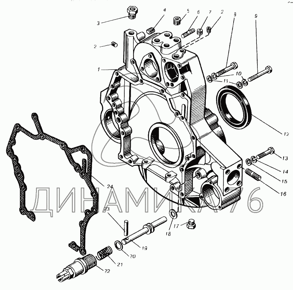 Перечень комплектующих от Картер маховика двигателя ЯМЗ-8423.10 на К-702МВА