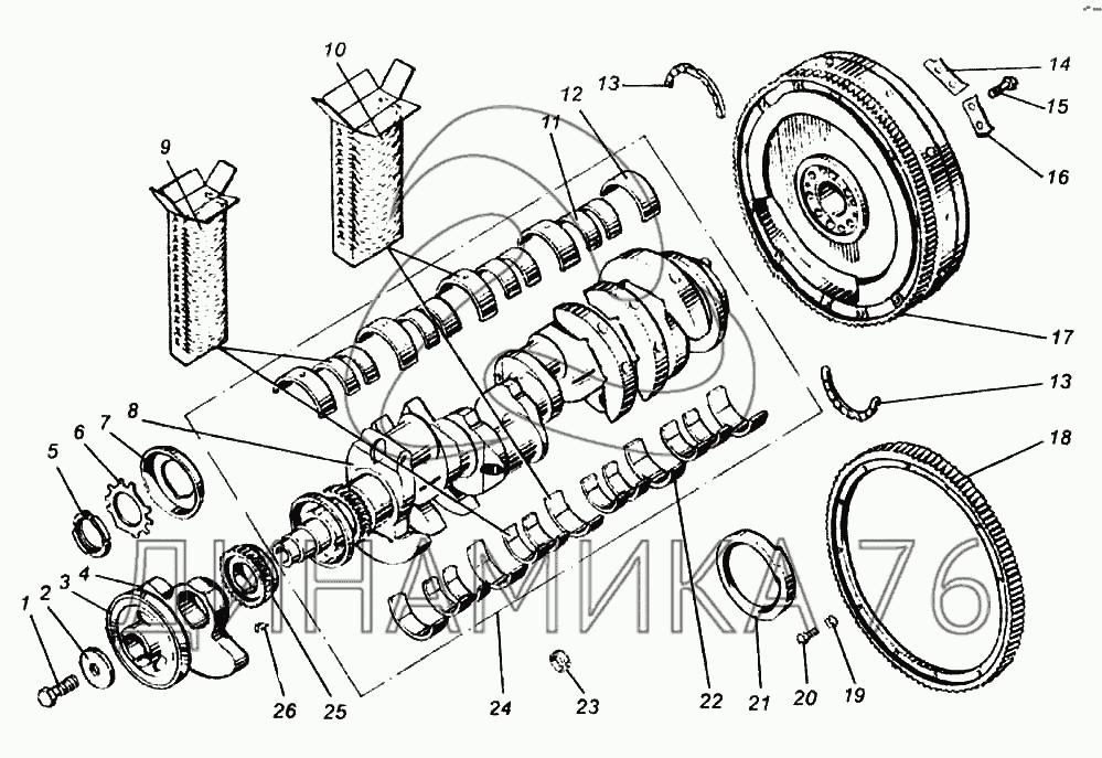 Коленчатый вал и маховик двигателя-238НД — К-702МВА: