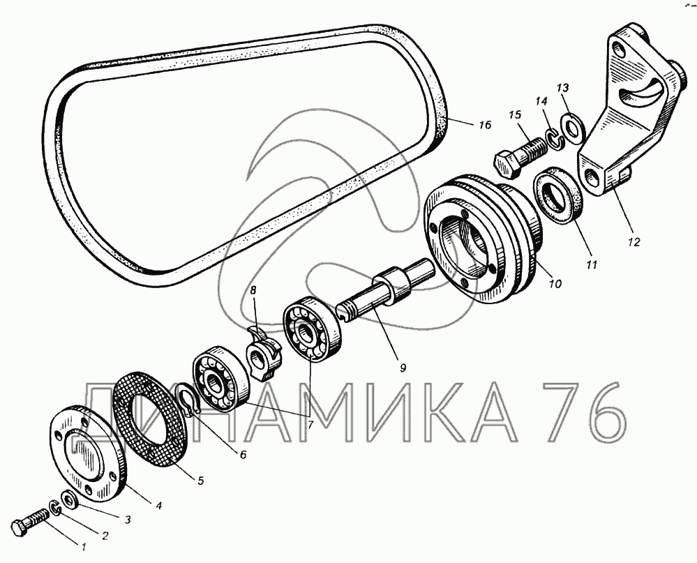 Перечень комплектующих от Натяжное приспособление ремня водяного насоса на К-702МВА
