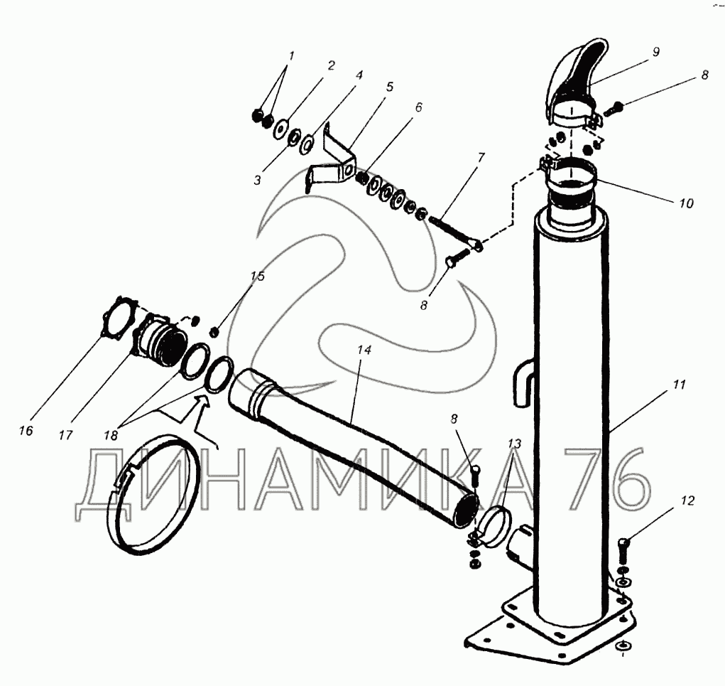 Перечень комплектующих от Система выпуска отработавших газов на К-702МВА