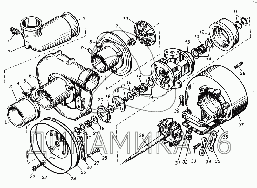 Схемы запчастей предназначены для справочных целей! Мы продаем не все запчасти от Турбокомпрессор двигателя ЯМЗ-8423.10 на К-702МВА, представленные в этом списке.