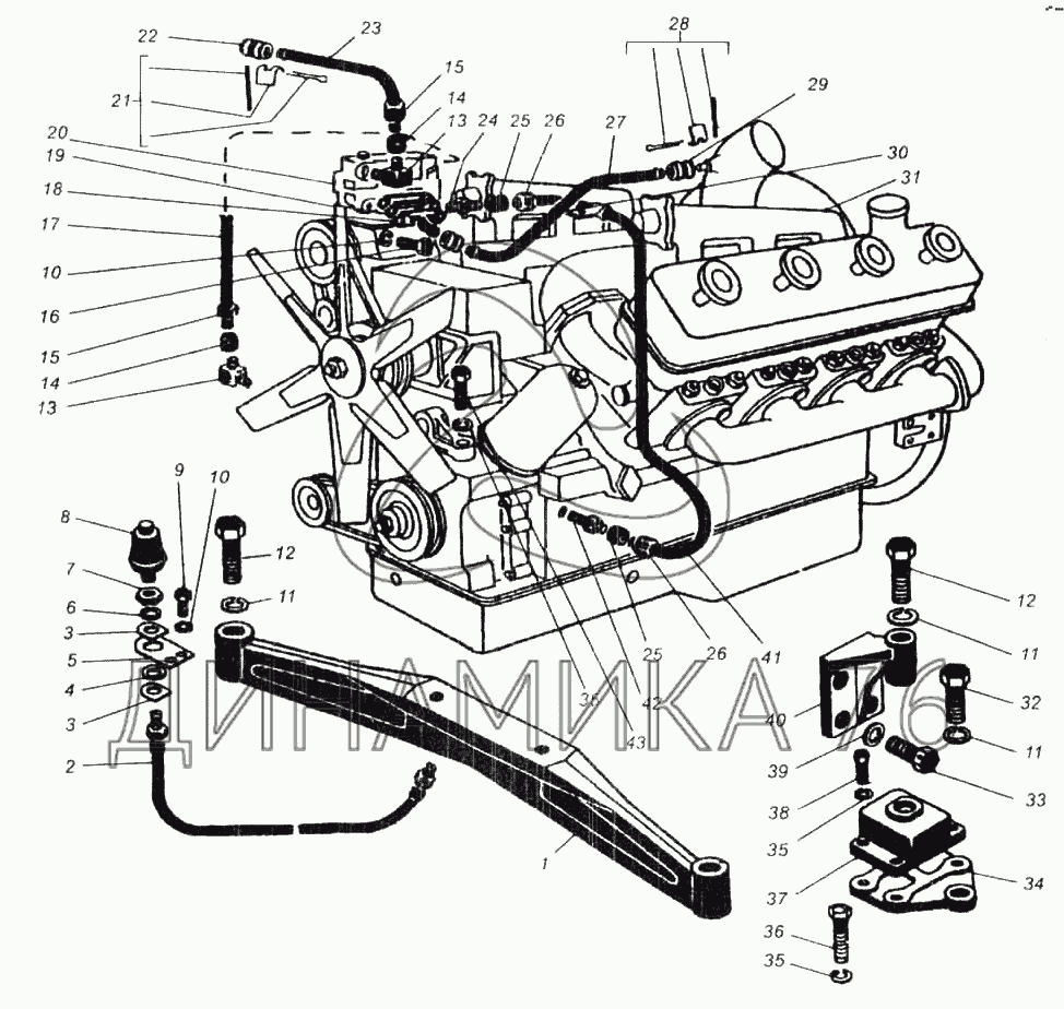 Перечень комплектующих от Установка двигателя на К-702МВА