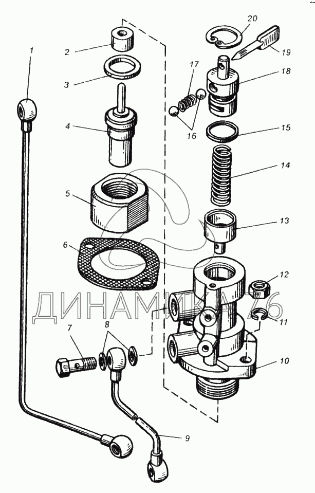 Перечень комплектующих от Включатель гидромуфты двигателя ЯМЗ-8423.10 на К-702МВА