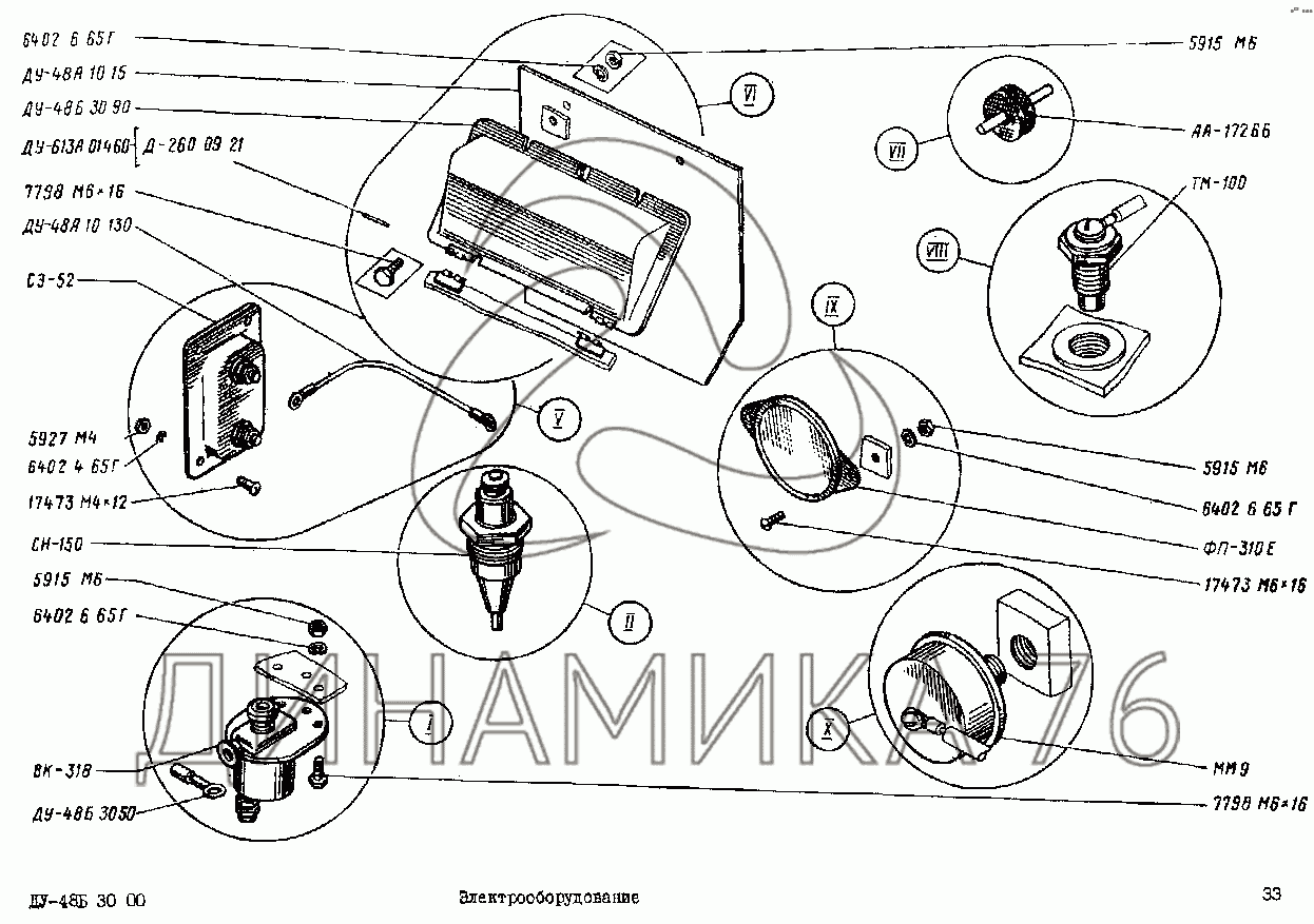 Схемы запчастей предназначены для справочных целей! Мы продаем не все запчасти от Электрооборудование ДУ-48Б 30 00 на ДУ-48Б, представленные в этом списке.
