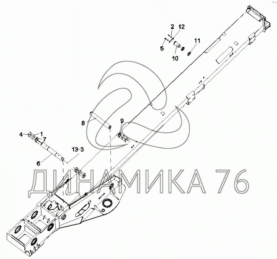 Pressure plate, shaft end, triple-hinge, lower, luffing
