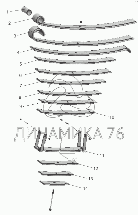 Перечень комплектующих от A229900003121 Spring assembly, rear steel plate на QY50CS93