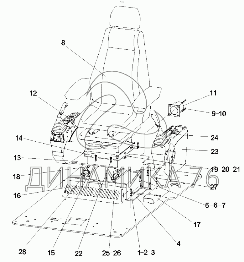 Перечень комплектующих от 10458174 Seat and control console AS на SY210C8