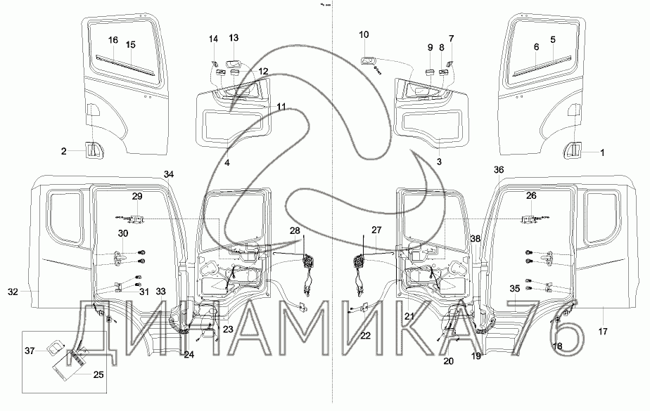 Harness and protection sleeve GP, door, left