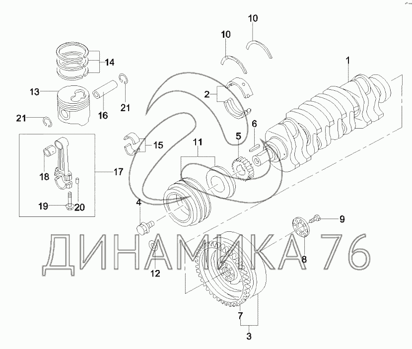 Перечень комплектующих от 60029667 Crankshaft & piston & flywheel на SY55C9