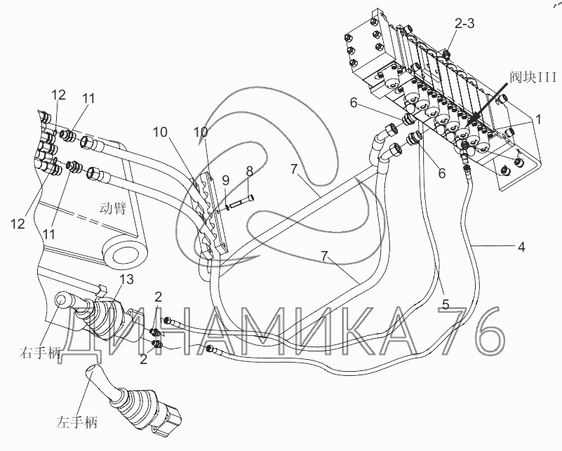 Перечень комплектующих от Bucket hydraulic line на SY75C
