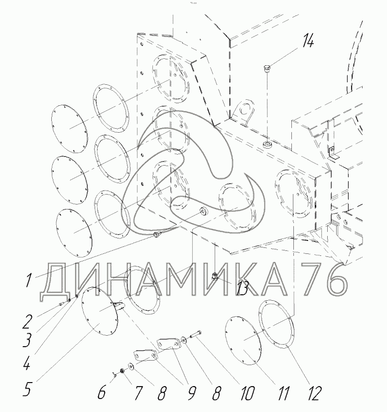 Схемы запчастей предназначены для справочных целей! Мы продаем не все запчасти от Привод шнеков. Крышки. Успокоитель. на ДЭ-210БМ, представленные в этом списке.