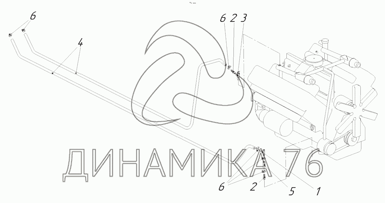 Перечень комплектующих от Установка трубопроводов отопителя кабины на ДЭ-210БМ