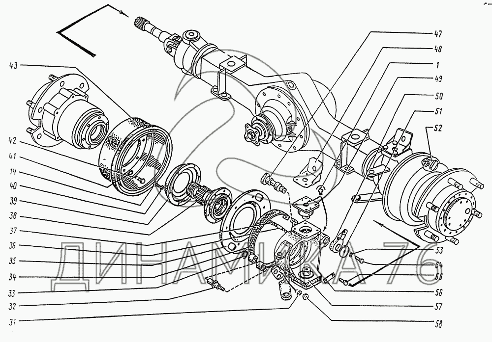 Мост передний (приводной управляемый) — E145W (ЕК-14):