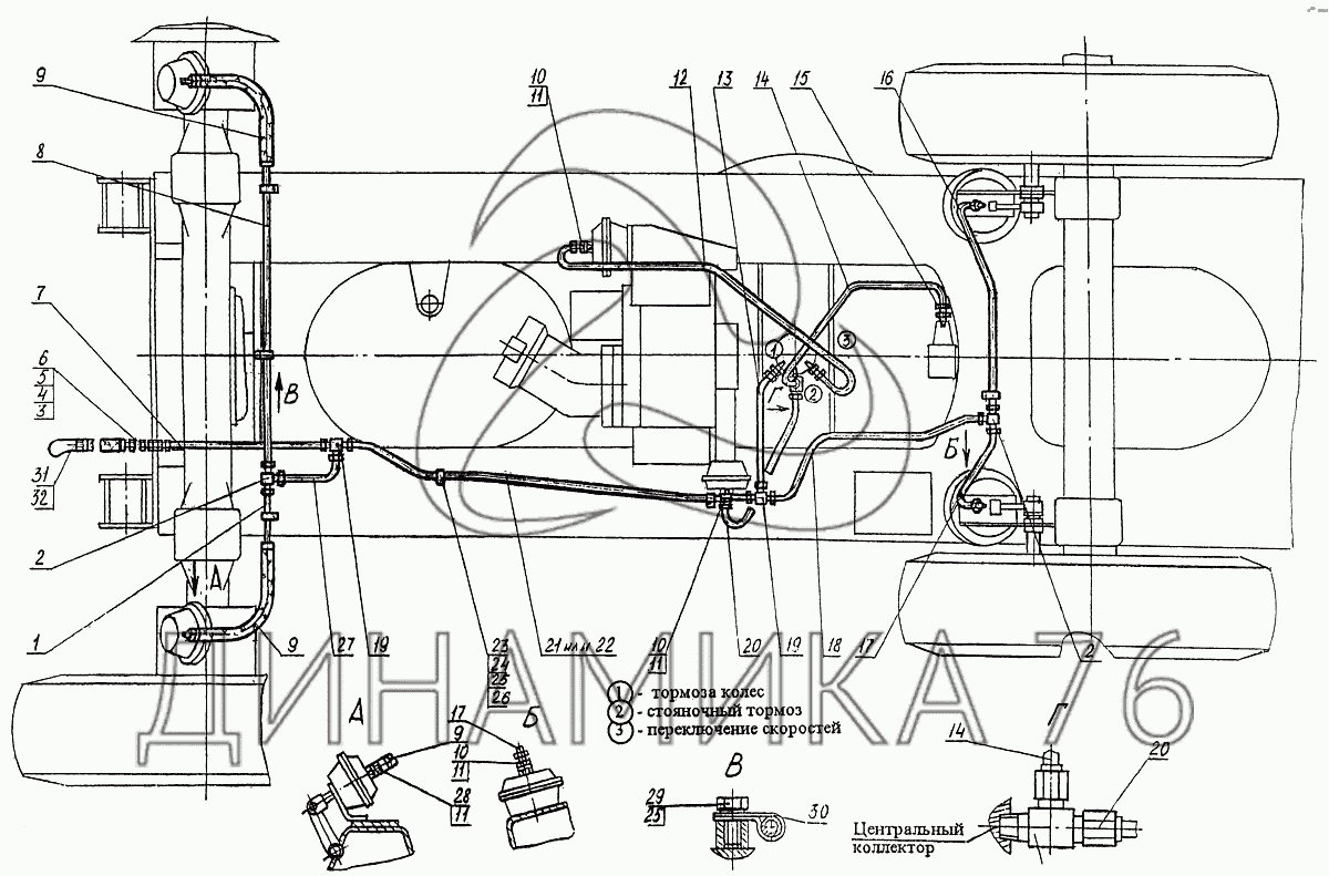 Пневмоуправление на ходовой раме — E145W (ЕК-14):