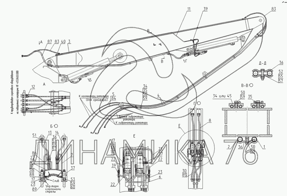 Трубопроводы рабочего оборудования на E185W (ЕК-18) (до 2008 г.)