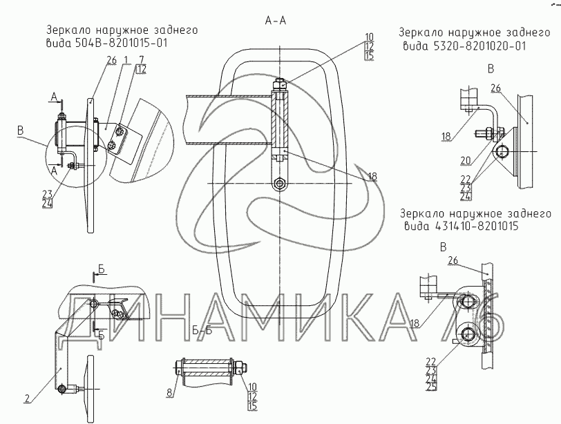 Перечень комплектующих от Установка зеркала заднего вида на E185W (ЕК-18)