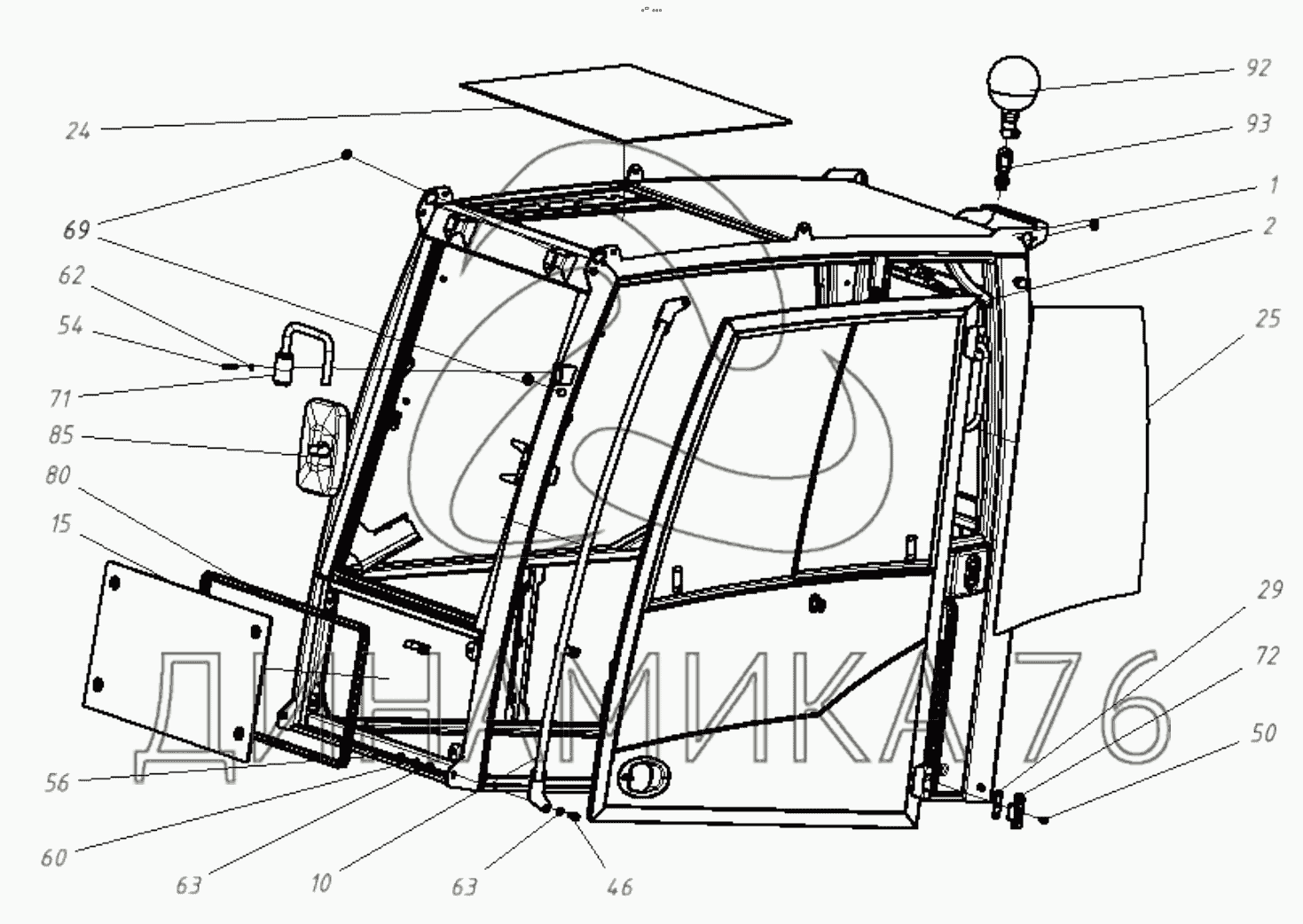 Перечень комплектующих от 202020100000 00 Кабина в сборе на E225LC