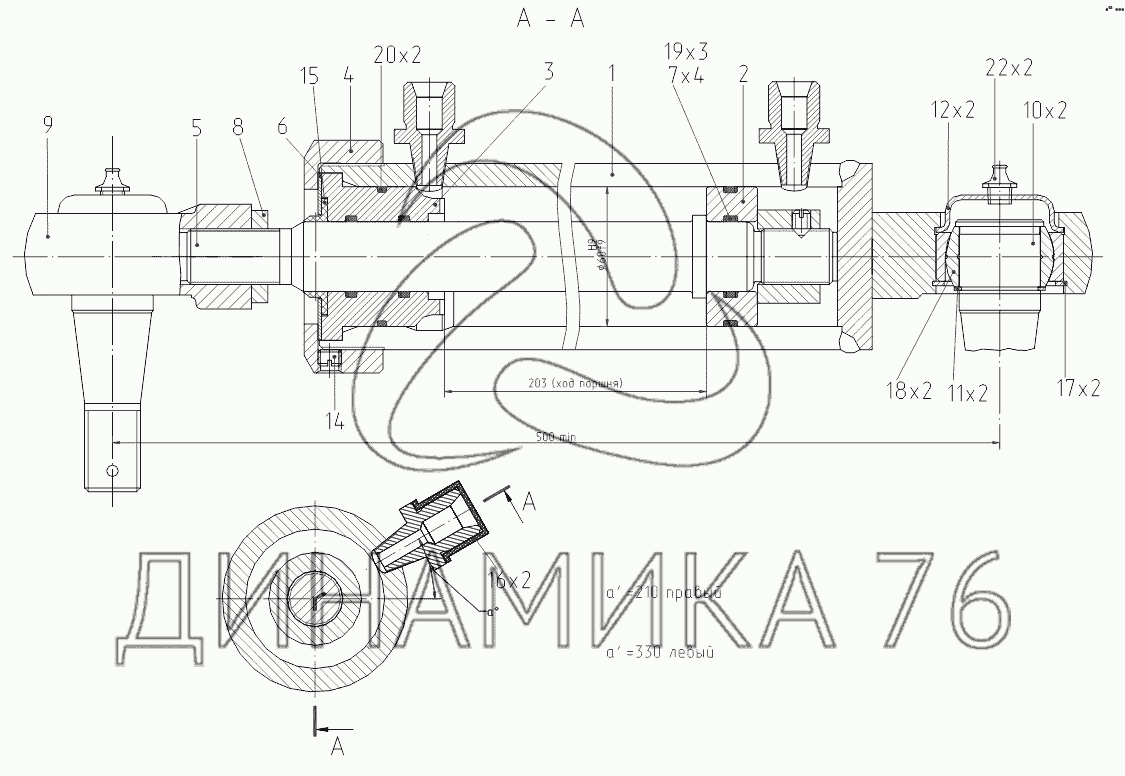 ЭО-3323А.71.80.300-10, ЭО-3323А.71.80.400-10 Гидроцилиндр поворота колес (правый, левый) — ЕК-14-90: