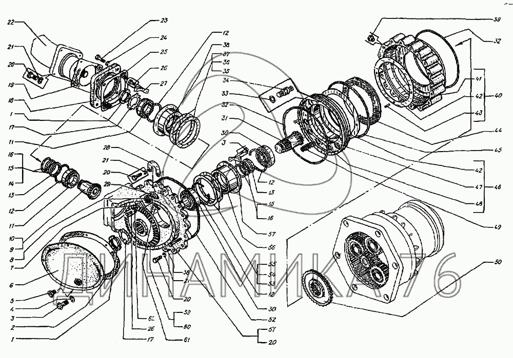 Схемы запчастей предназначены для справочных целей! Мы продаем не все запчасти от Механизм хода экскаватора левый на ЭО-3122, представленные в этом списке.