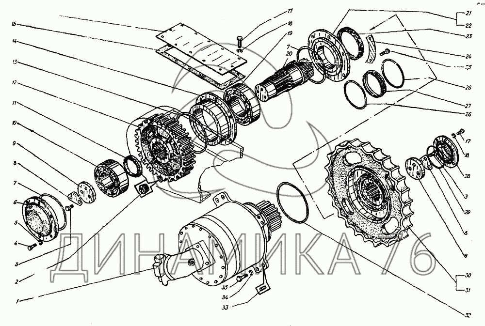 Перечень комплектующих от Привод гусеницы левый на ЭО-3122