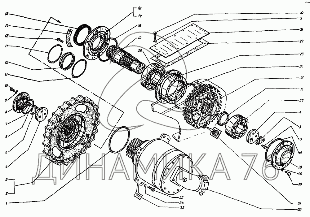 Перечень комплектующих от Привод гусеницы правый на ЭО-3122