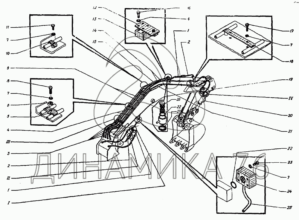 Трубопроводы рабочего оборудования обратная лопата — ЭО-3122: