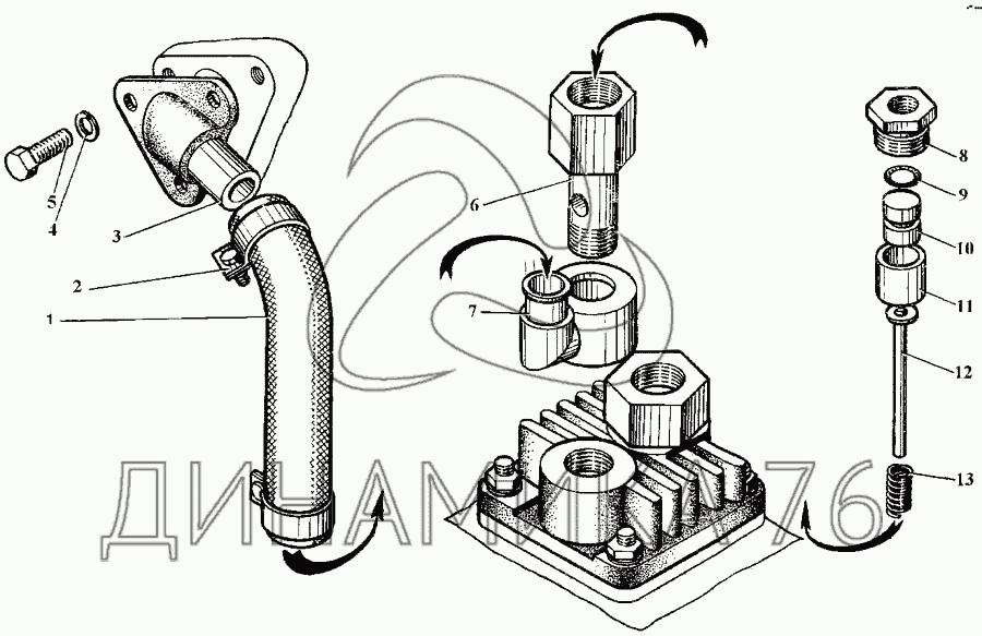 Перечень комплектующих от Установка разгрузочного устройства компрессора на ЭО-3323