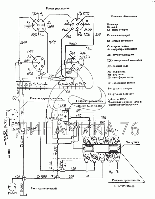 Монтажная схема гидроуправления на ЭО-3323А (до 2002 г.)