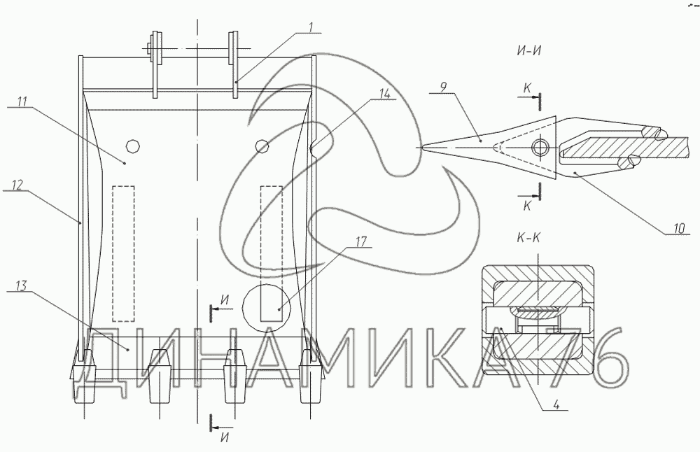 Перечень комплектующих от Ковш обратной лопаты на ЭОВ-3521