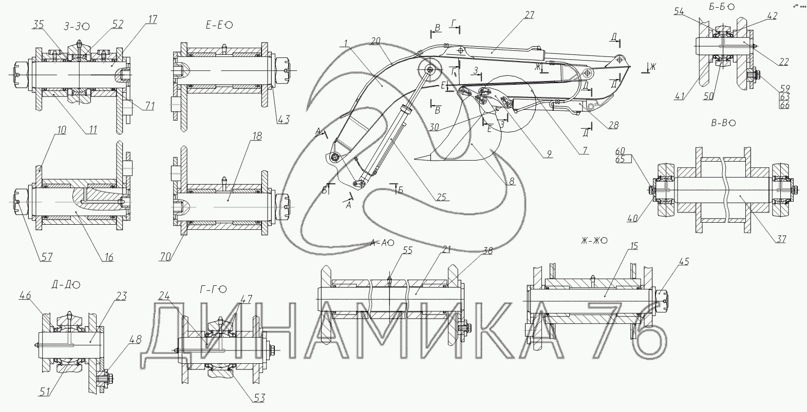 Перечень комплектующих от Рабочее оборудование обратной лопаты на ЭОВ-3521М-1