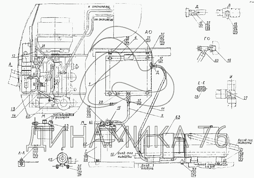 Перечень комплектующих от Установка подогревателя на ЭОВ-3521М-1