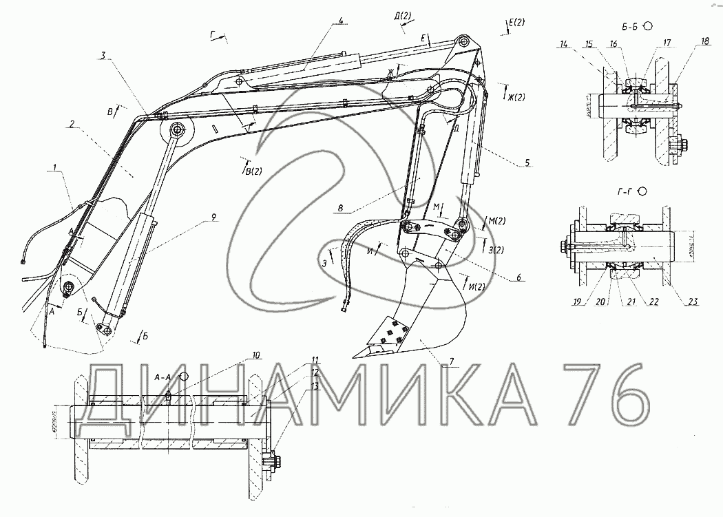 Перечень комплектующих от Рабочее оборудование обратной лопаты на ЕТ-16