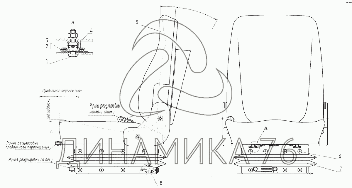 Подушка в сборе с механизмом продольной регулировки