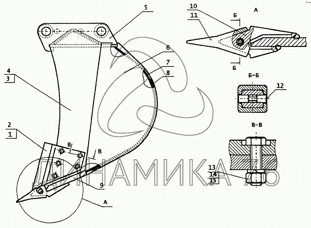 Перечень комплектующих от Ковш обратной лопаты на ЕТ-25