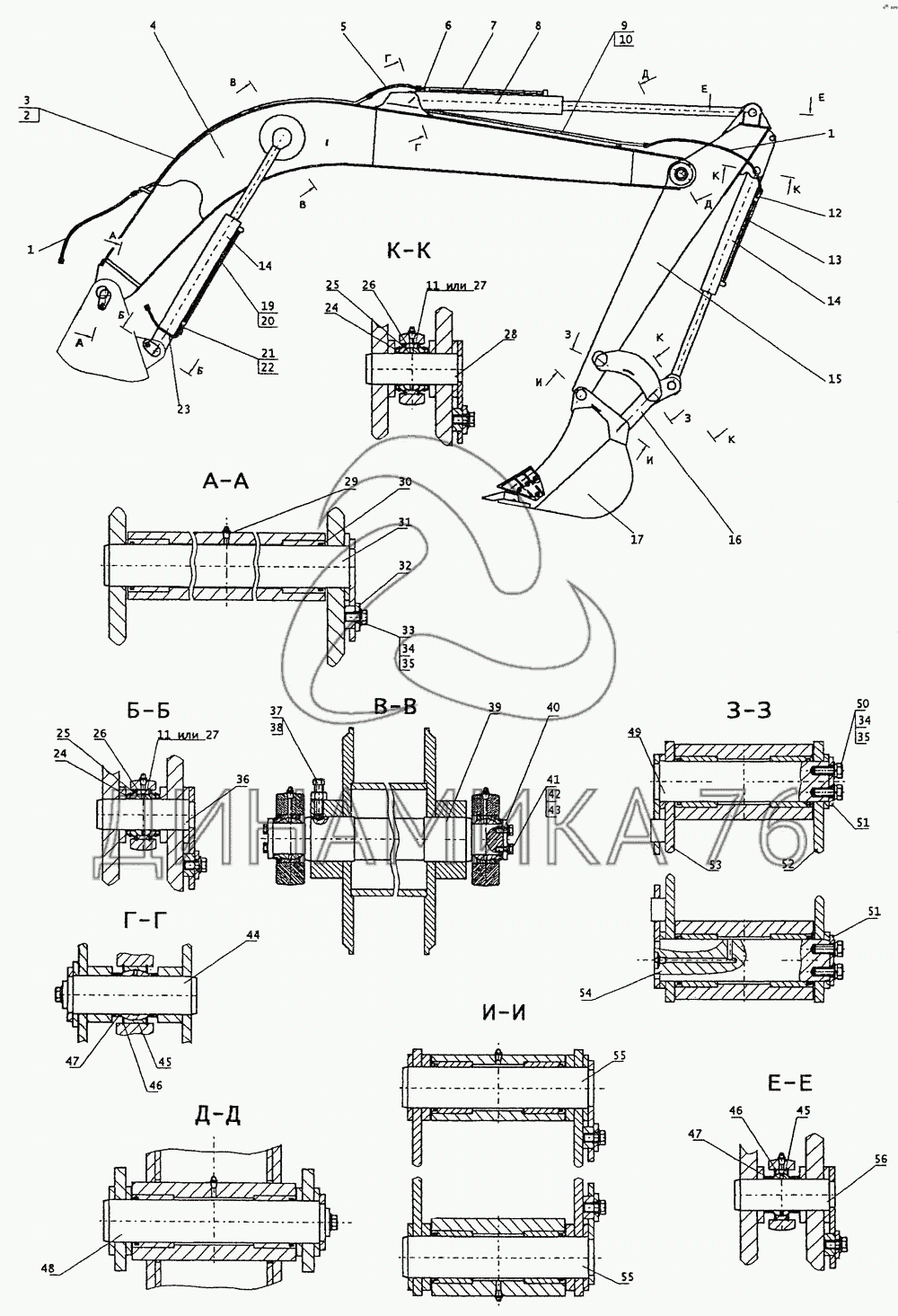 Перечень комплектующих от Рабочее оборудование обратной лопаты на ЕТ-25