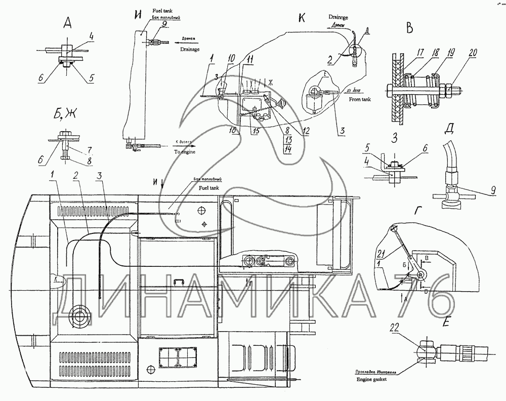 Перечень комплектующих от Топливопроводы и управление подачей топлива на ЕТ-25