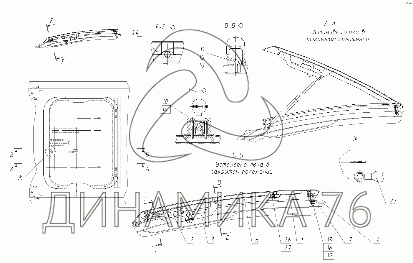 Перечень комплектующих от 312200250000 00 Установка люка на ЕТ-26i