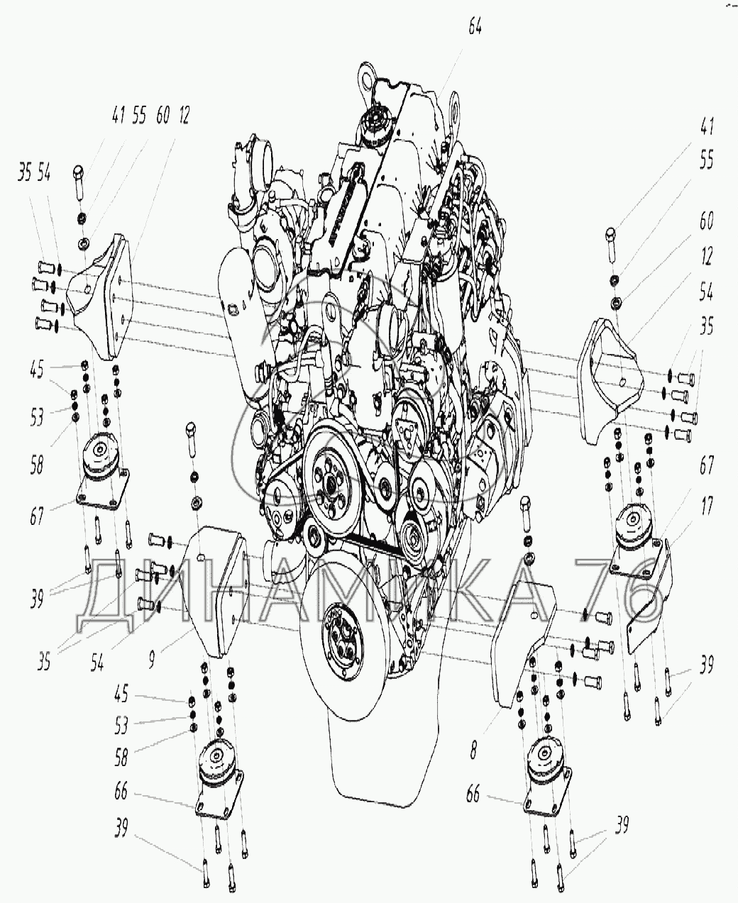 Перечень комплектующих от Двигатель с опорами на ТХ-210