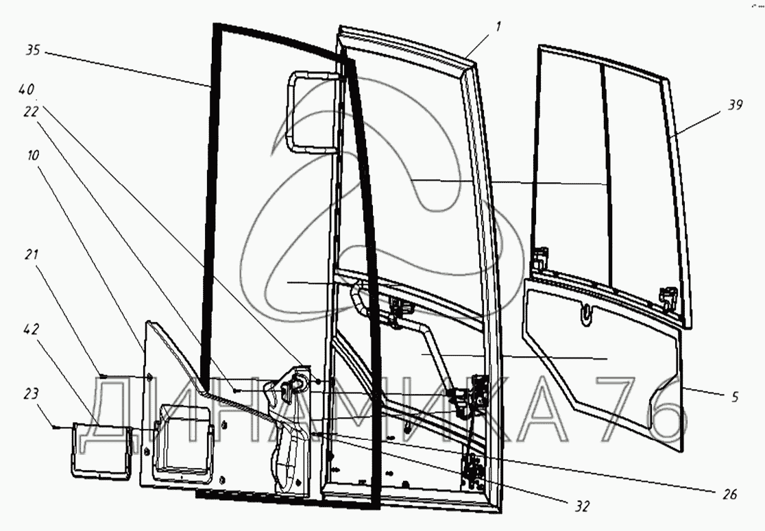 Перечень комплектующих от 202020120000 00 Дверь в сборе на ТХ-220