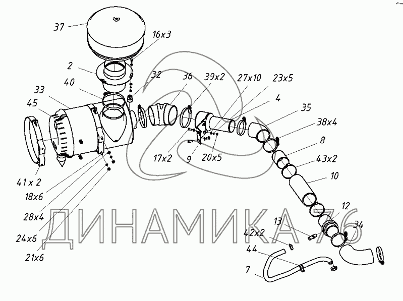 Перечень комплектующих от 202120003000 00 Установка воздухоочистителя на ТХ-270 / 300