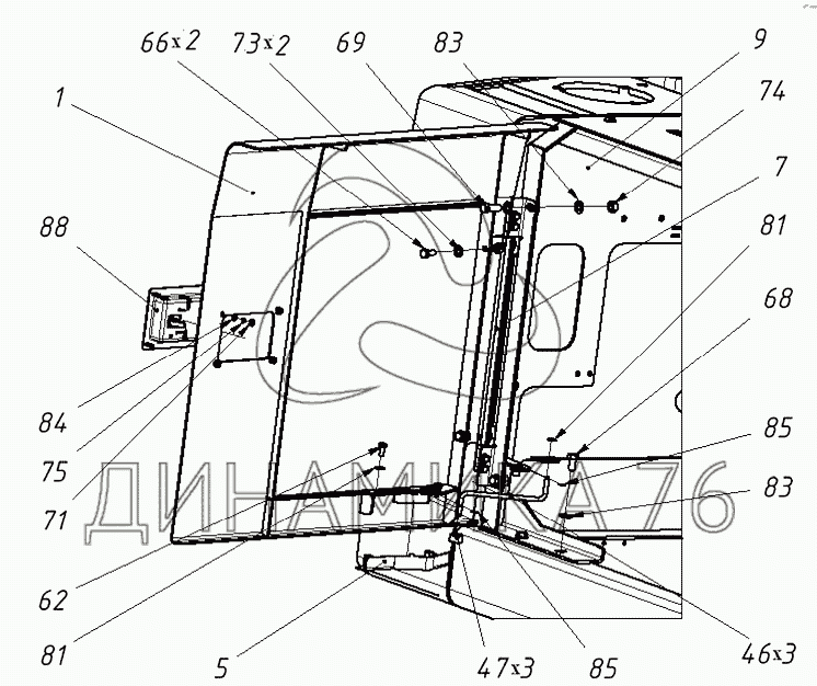 Перечень комплектующих от 272060100000 02 Установка капота на ТХ-270 / 300