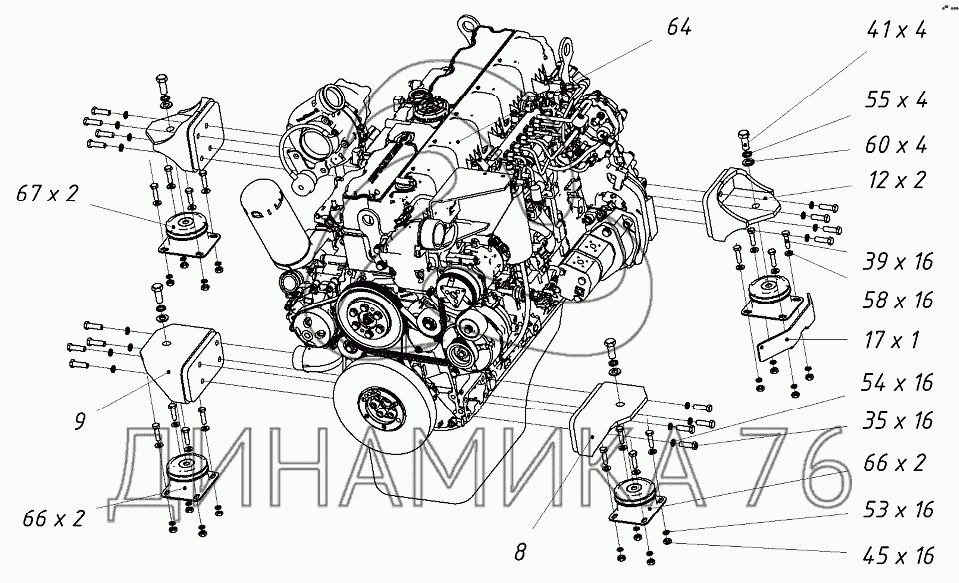 Перечень комплектующих от Двигатель с опорами на ТХ-270 / 300